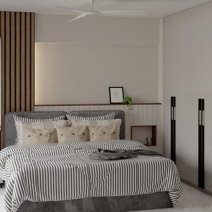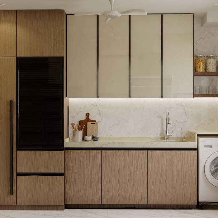 By employing smart space-saving solutions & a minimalist aesthetic, we transformed the compact area into a functional & stylish home. Clever storage solutions & strategic use of mirrors & lighting helped create an illusion of spaciousness. The kitchen has been designed for efficiency and ease of movement, while the bedroom exudes tranquility.