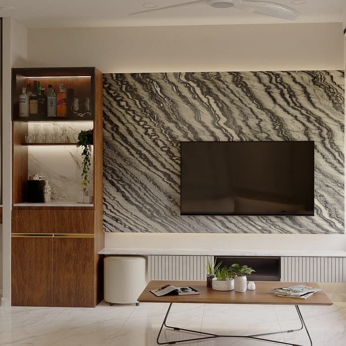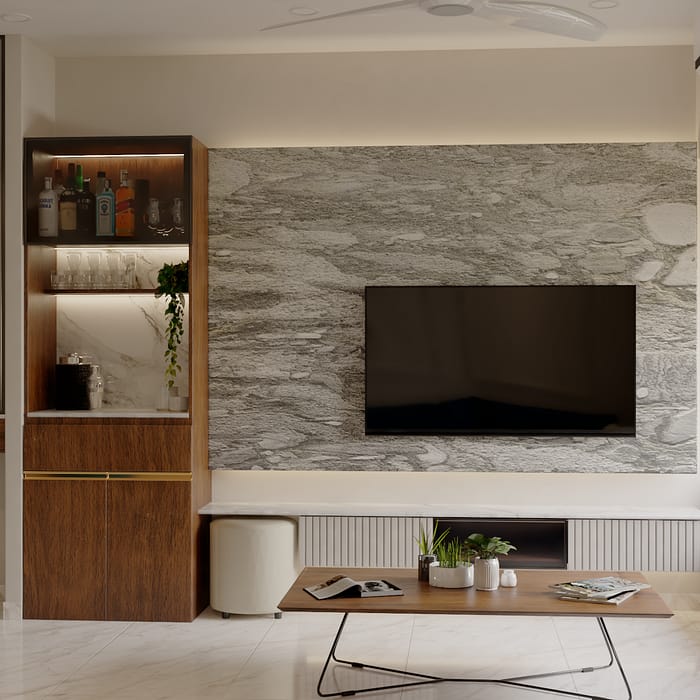 Designing this 500 sq.ft. flat in the affluent neighbourhood of Lokhandwala in Bombay for a soon to-be married, bachelor posed a unique and exciting challenge. The primary goal was to accommodate a multitude of requirements without cluttering the space, ensuring it felt expansive and inviting. Key to this project was integrating essential Vastu principles.